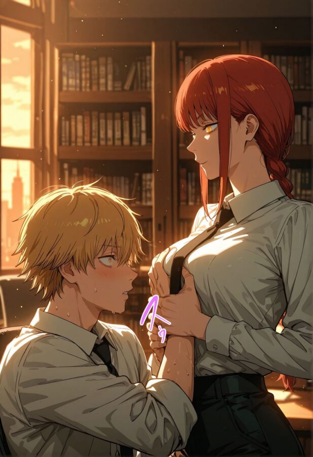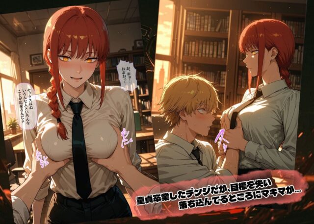 AI画像生成による『チェンソーマン』のエロ画像まとめ。――なぁポチタ。いつか俺も女抱けるんかな…。チェンソーマンの、デンジ、パワー、マキマ、レゼの二次創作です。◆パワー:デンジに胸を揉ませる約束をしたパワー。約束通り揉ませるがデンジは止まらず直揉みに…。そしてパンツを脱がし、クンニからのセックスへ!パワーは嫌がり抵抗しているようだが、その力は本気ではなく意外とノリノリなのでは…。◆マキマ:童貞を卒業したデンジだが目標達成の喪失感から元気がなかった。それを見たマキマはデンジの相談にのり、気持ちいいことはもっとある、とデンジに手取り足取りエッチな事教えてくれるのだった。◆レゼ:夜のプールに忍び込み、裸で泳ぐ二人。そしてレゼからの告白後、プールサイドでそのままセックス。デンジがアナル童貞と知り、アナルセックスへと誘うのだった…。