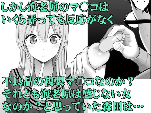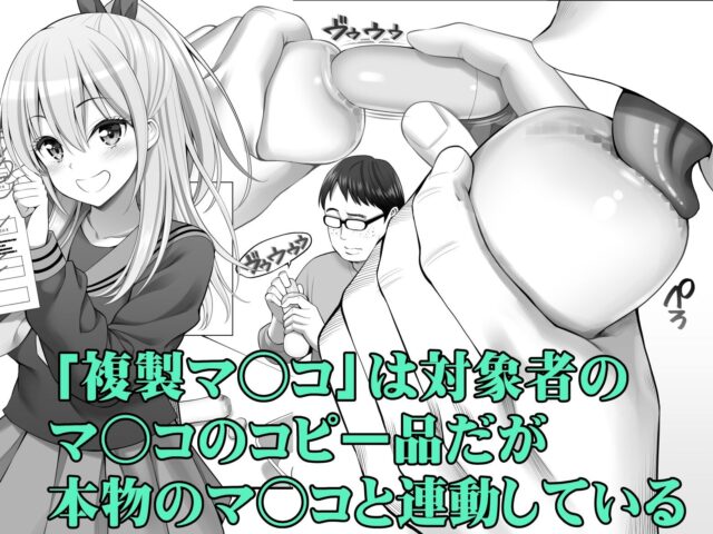 主人公は同級生でアイドル活動をしている海老原 愛の「複製マ◯コ」を手に入れた。「複製マ◯コ」は対象者のマ◯コのコピー品だが本物のマ◯コと連動している。しかし海老原のマ◯コはいくら弄っても反応がなく、不良品の複製マ◯コなのか?それとも海老原は感じない女なのか?と思っていた森田はある方法で海老原を感じさせる事に成功する。そして、はじめて知る性の悦びに海老原の理性は壊れていく…