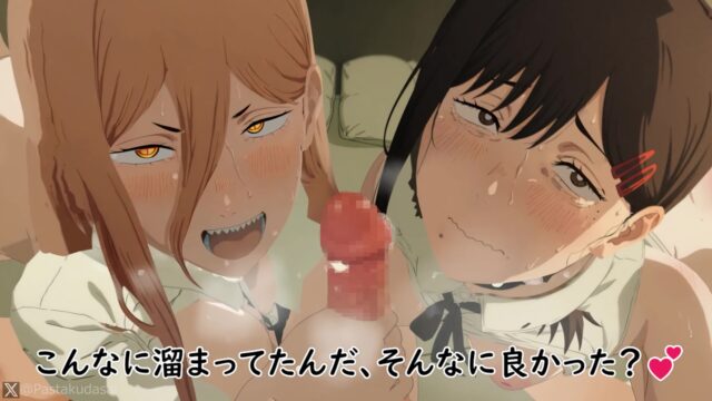 TVアニメ『チェンソーマン』より、マキマ&レゼの3Dエロアニメが公開された。原作でも人気のある二人がWフェラ、W素股でたっぷり搾り取ってきます。※全裸差分や他キャラ差分(パワー&東山コベニ、三鷹アサ&ヨルなど)がFantia、FANBOXにあります。