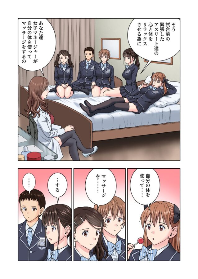 運動部員の性処理係という過酷な運命が待つ女マネ部員。しかし彼女たちはセックスを通して自らの性的潜在能力を次々に発揮していく。そんな彼女たちに訪れた一時の平安。ローションマッサージの訓練を通して彼女たちはまた新たな結束を手にする。